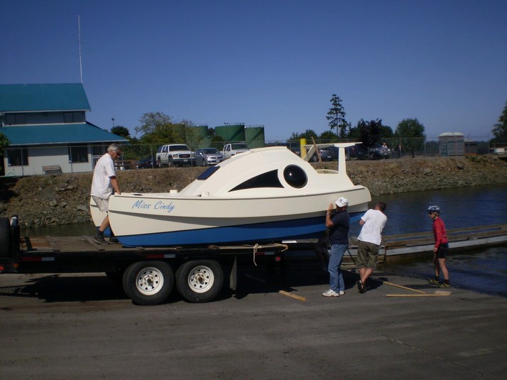 On the trailer ready to head out. She cleared the edge of the sundeck by 1/4".
