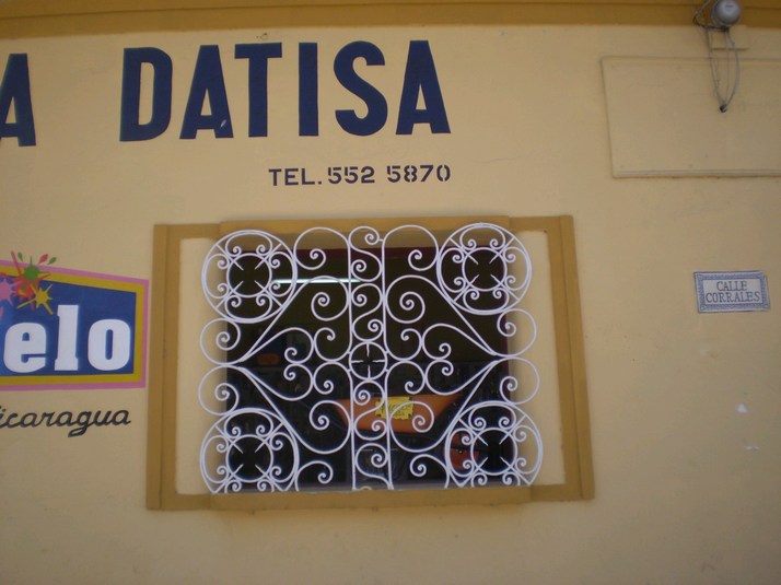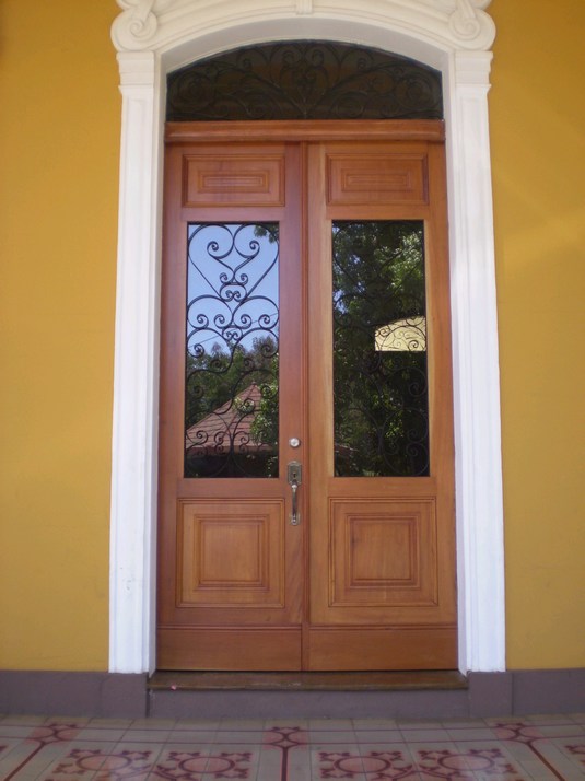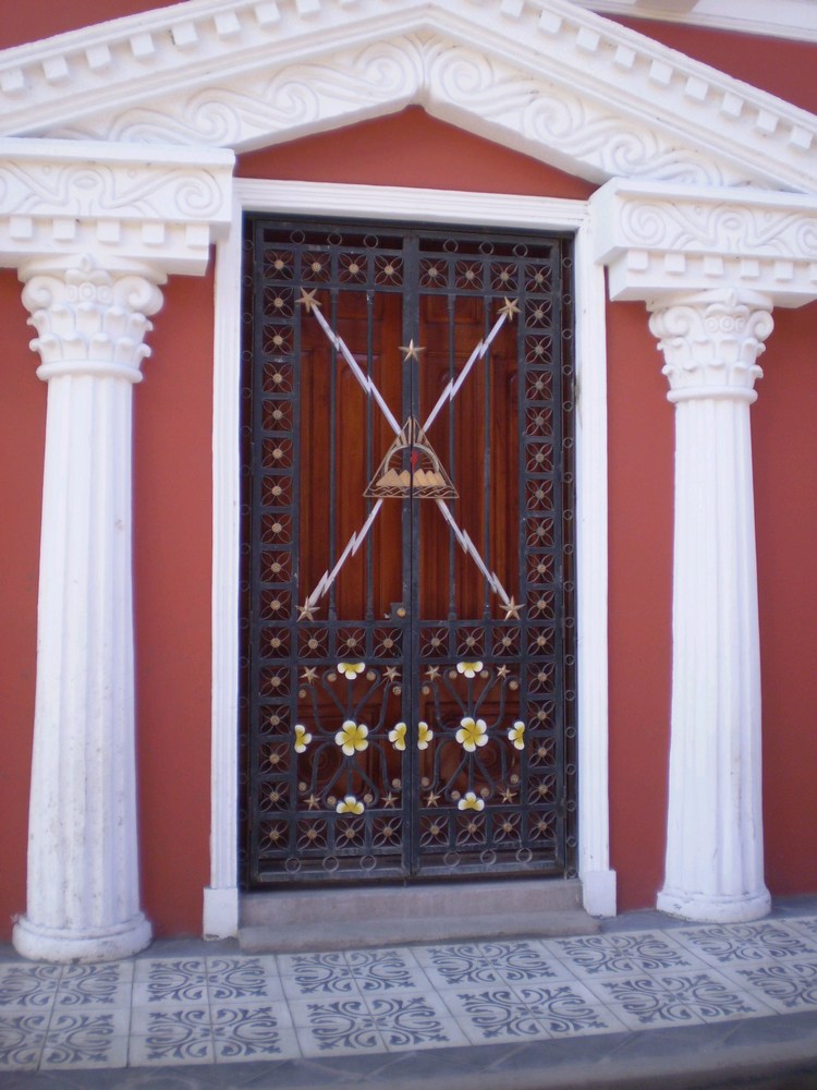 And this is my favorite door. It has the Nicaraguan coat of arms on it, no it is not a pyramid. It is a crest with the sea at it's base, 5 volcanoes representing the 5 countries in Central America ( Belize really belongs to Guatemala ) the Phrygian cap shining out freedom and the rainbow for peace. This crest is on their flag, coins and bills and is all over my paperwork too.