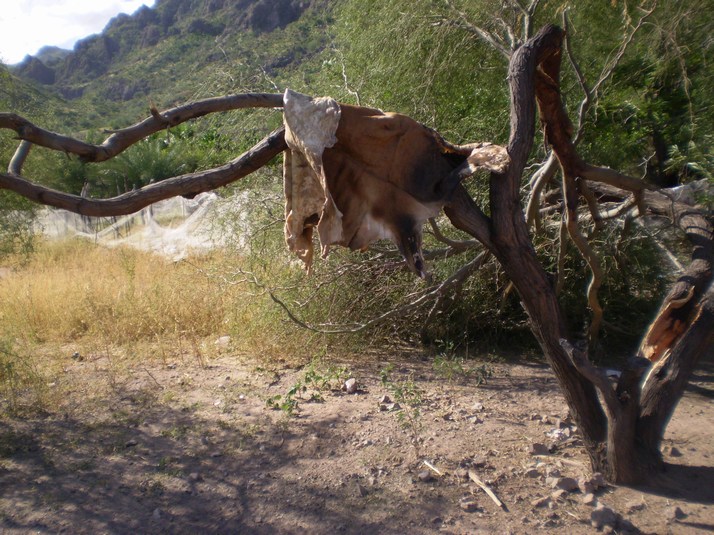 Jim from a camper on the beach comes by in a panga in the morning and asks me if I would like a fish. I say sure a small one. Later in the day he comes by while I am chatting with the girl aboard a Cal 25 from my inflatable kayak and asks if I still want one as they are heading out to do some spear fishing. Yep. I mention to the girl that when my Dad had a Cal 20 I thought the 25 was a huge boat that could cruise anywhere in the world. She has sailed it from Sausalito in tandem with her friend who has another Cal 25. She is heading to La Paz to hang out with his boat till he gets back from the states. She does not have an engine but uses a big oar lashed to a spinnaker pole and can get a couple of knots but it is hard work. I mention how the Chinese yuloh has a line at the front to hold down the oar so that you just need to twist your wrists and push and pull, rather than counter the thrust of the oar. She seems keen to try it out.