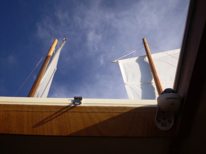 Daytime view from the bunk, with the telltale compass. Looks like we are on a broad reach with the wind forward of the port quarter.