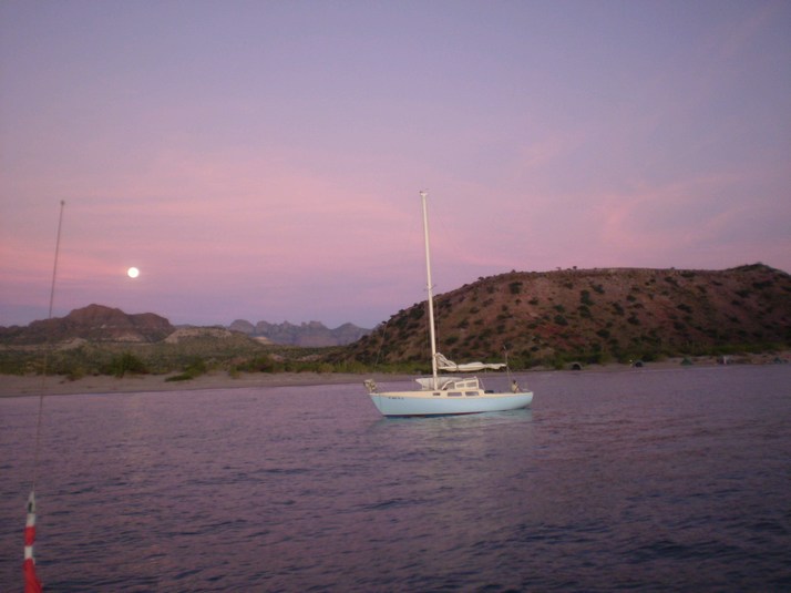 Had nice steady force 3-4 winds until just before night fall when they dropped a little. By that time we were past Bahia Conception having covered 40 NM in 8 hours.